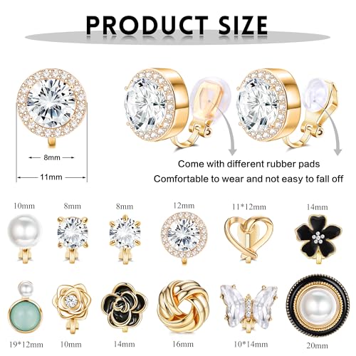 • Clip on Earrings Set: THUNARAZ newly launched 12 pairs elegant clip on earrings for women, with exquisite and attractive designs; Including lustrous pearl clip on earrings, sparkled CZ clip on earrings, flower clip earrings, and heart earrings non pierced