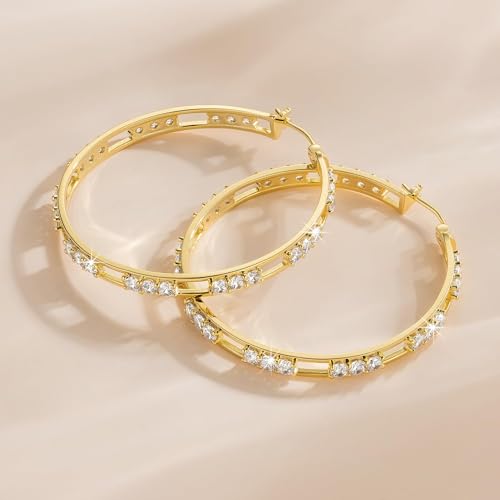 HOT ! 14K Gold Hoop Earrings for Women Gold Earrings for Women Trendy with Cubic Zirconia Mix of Style and Personality Large CZ Hoops Earring for Womens 30/35/42mm