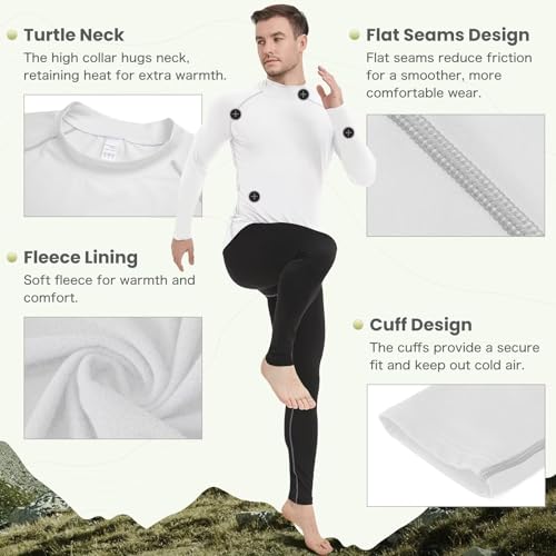 Fabric type: 100% PolyesterCare instructions: Machine WashClosure type: Pull OnNeck style: Turtle Neck【Warmth & smooth Fleece Lined】- This long sleeve thermal shirts for men are constructed out of soft micro-fleece that feels great against the skin and will keep you cozy warm without overheating in cold weather.These winter thermals for men has turtle neck which allows you to lock in extra warmth.【Moisture-wicking & Quick Dry】 - Mens base layer shirt made from 90% polyeater with inside fleece lining holds heat in and works well at wicking away sweat from your body that keeps you dry and comfortbale.【Breathable & Odor Resistance.】 - The mens thermal long sleeve shirt with breathable and lightweight fabric dries fast for thermoregulation,and odor resistance to keep you fresh while exercising outdoor.【Reduce Chafing & Flexible】- This men's base layers with smooth flatlock seaming designed to minimize chafing and eliminate irritation for enhanced comfort.With 10% spandex in the construction,which gives it a nice snug fit and stretchy feel.【Designed for Cold Weather】- These fleece thermal compression shirts for men will keep you warm and snug anytime in both cold and extremely cold weather. ideal for uses like hiking,hunting,running,skiing,walking workout,gym,yoga,equestrian,fishing,or bike shoveling snow,snowboarding,fitness,backpackingand more.