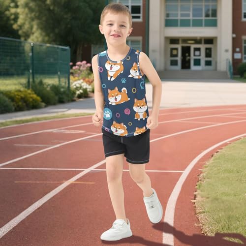 J JOYSAY Cartoon Shiba Dog Blue Boys Tank Top Sleeveless Muscle Shirts Quick Dry Active Sport Workout Kids T-Shirts 3-15T 3