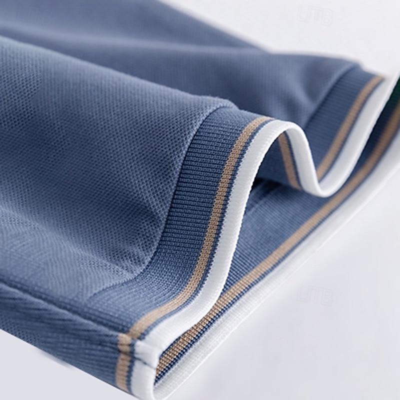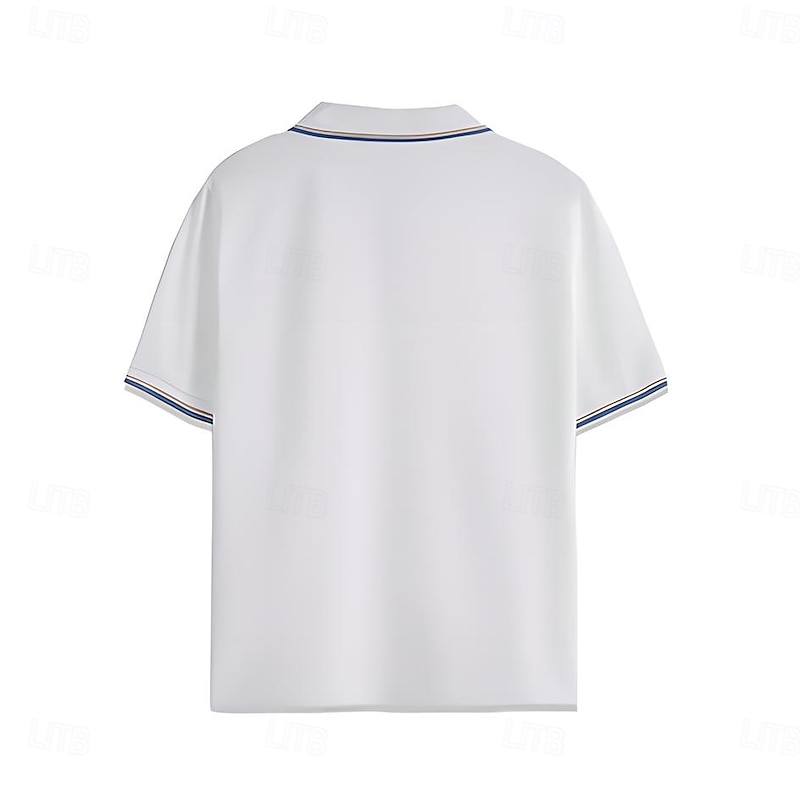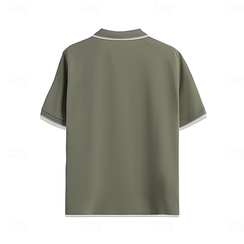 More information about Men's T Shirt Fold-over Collar V Neck Training Short Sleeve Stripe-Trim Color Block Clothing Apparel Vacation Vintage Neutral Fashion