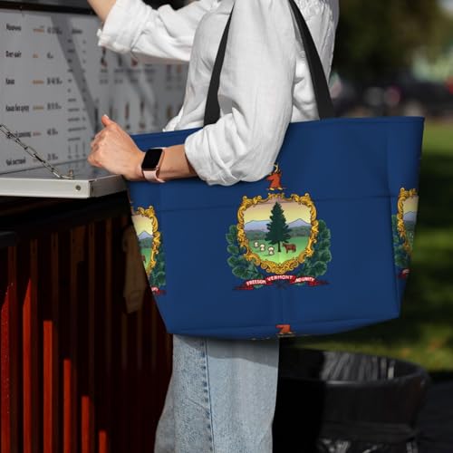 HOT ! Vermont State Flag Large Capacity Beach Travel Bag, Foldable Beach Bag with Zipper, Great for Grocery Bag Pool Gym Travel Shopping