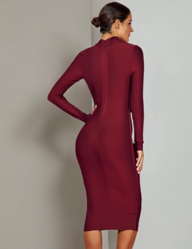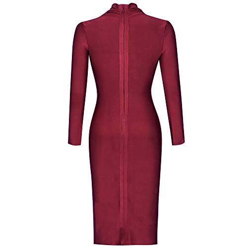 whoinshop Women 's Draped Deep Plunged Long Sleeve Night Out Club Cocktail Party Dresses with Knee Length 4