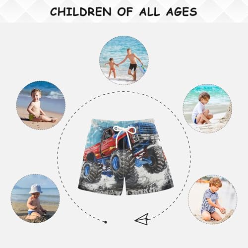 Pigsaly Boys Swim Trunks Blue Monster Truck Red Monster Truck Boys Board Shorts Swimsuit Swimwear Summer Bathing Suit XS 4