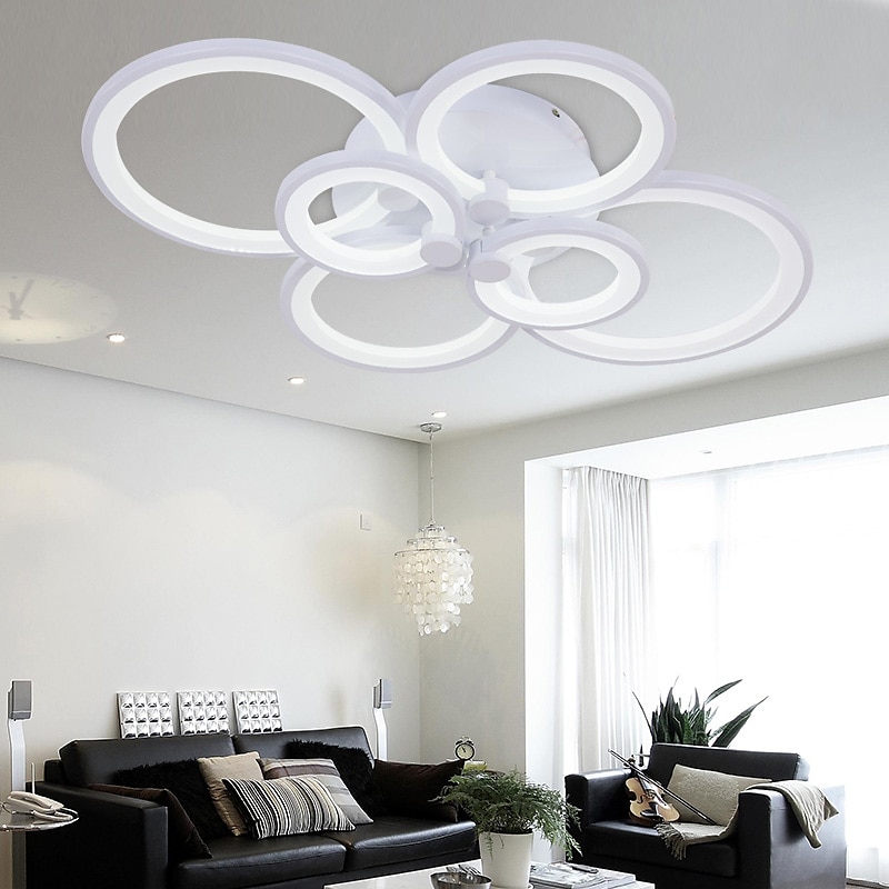 6-Light LED Dimmable Ceiling Light Flush Mount Lights Circle Design Modern Style Simplicity Acrylic 90W Living Room Dining Room Bedroom Light Fixture ONLY DIMMABLE WITH REMOTE CONTROL 9