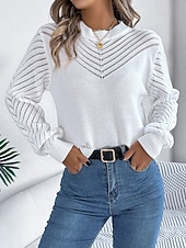 More information about Women's Sweater Elegant Daily Plaid Pure Color Crew Neck Hollow Out Long Sleeve Regular Tops Knit Work White Orange Fall Winter