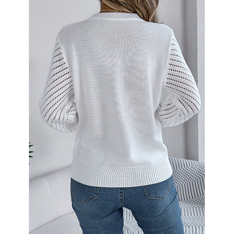 HOT ! Women's Sweater Elegant Daily Plaid Pure Color Crew Neck Hollow Out Long Sleeve Regular Tops Knit Work White Orange Fall Winter