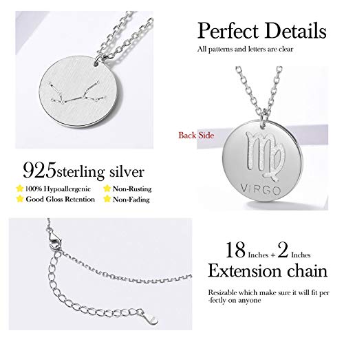 ChicSilver 925 Sterling Silver 12 Constellation Necklace Round Astrology Horoscope Zodiac Sign Pendant Necklace, Silver/Gold Plated 4