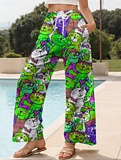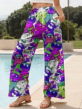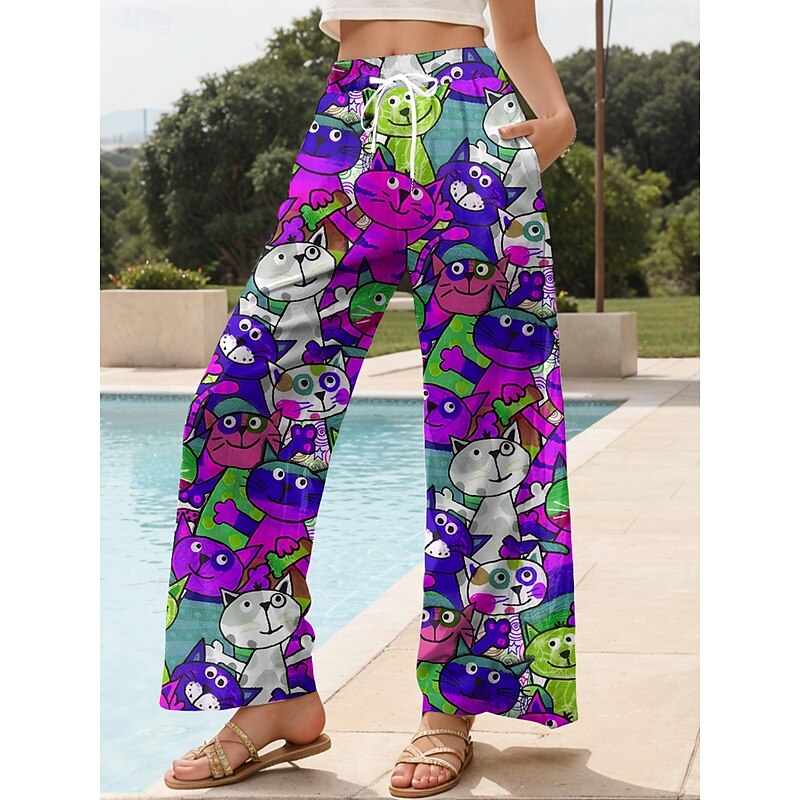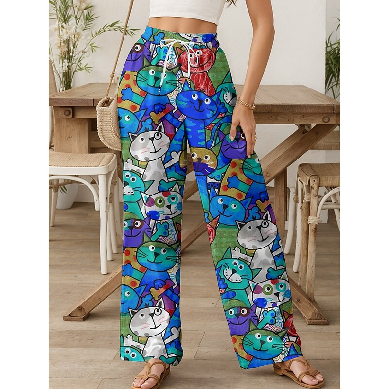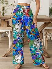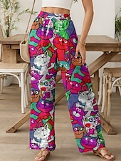 More information about Women's Wide Leg Chinos Baggy Pants Vacation Vintage Fashion Full Length High Waist Graphic Animal Cat Printing Soft Breathable Micro-elastic Formal Outdoor Vacation Yellow Red Blue Purple Summer
