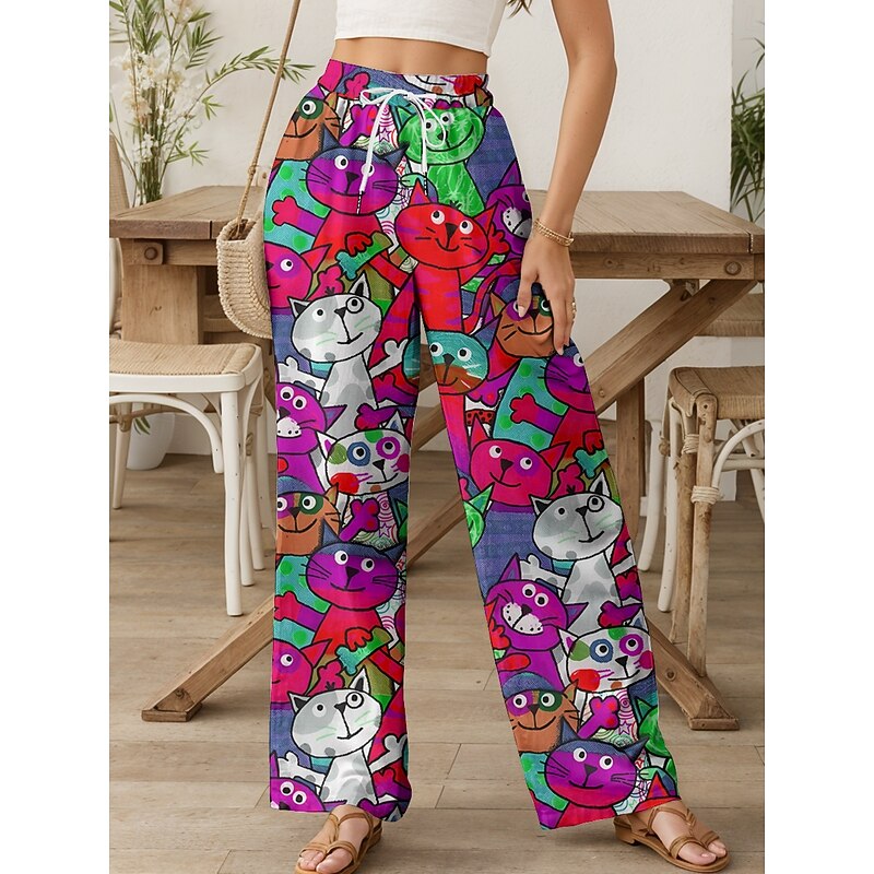 HOT ! Women's Wide Leg Chinos Baggy Pants Vacation Vintage Fashion Full Length High Waist Graphic Animal Cat Printing Soft Breathable Micro-elastic Formal Outdoor Vacation Yellow Red Blue Purple Summer