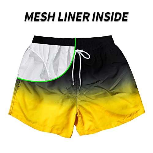 Fabric type: 100% PolyesterCare instructions: Machine WashOrigin: ImportedClosure type: Drawstring【rugged & Breathable】Mens swimming trunks made of polyester fabric with lightweight and breathable, sturdy and durable with high-quality sewing.【Mesh Lining】 Our 3 inch swim shorts with silky mesh liner ensure grit won't get into shorts and keep off sweat sticking, great for running, training, and working out.【Elastic Waist】Our funny print swim shorts combined a soft elastic waistband with adjustable drawstring that will never sag or slip down. You can freely adjust the waistband according to your waist, bring you maximum comfort.【Funny Color】Men bathing suit trunks designed with funny prints and grandient color,this is the style you're looking for, perfect for lesuire outgoing daily wear.【Occasion】Our summer casual swimming shorts are a comfy option for your various summer activities, including swimming, walking, sunbathing, fishing, shopping, beach volleyball, surfing and more. Bringing you a cool summer!!!