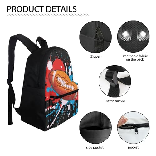 BIGCARJOB Colorful Art Rugby School Backpack for Boys Girls School Bags Kids Back to School Bookbags Large Rucksack Teens Adult Casual Daypack Soccer Schoolbags for Kindergarten Elementary 4