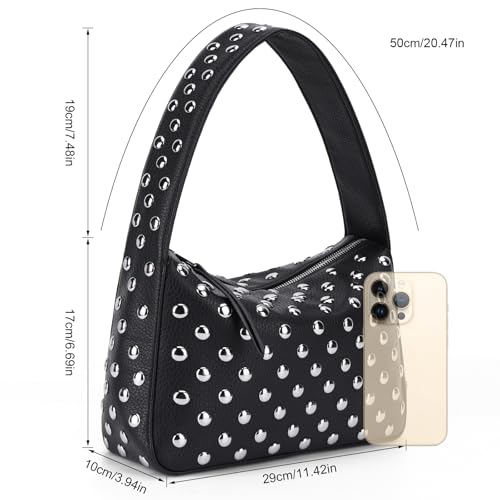 HOT ! YFGBCX Studded Purses Black Shoulder Bag Y2K Purse for Women Handbag Soft Leather Fall Purse