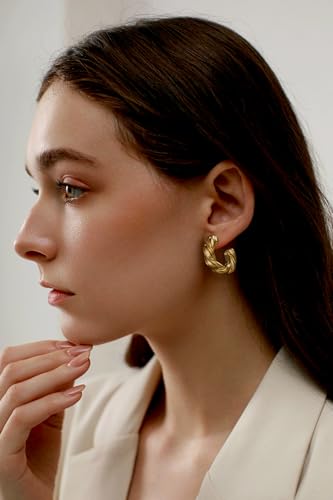 9 Pairs Chunky Gold Earrings Set for Women Trendy Lightweight Gold Plated Hoop Earrings Hypoallergenic Jewelry 5