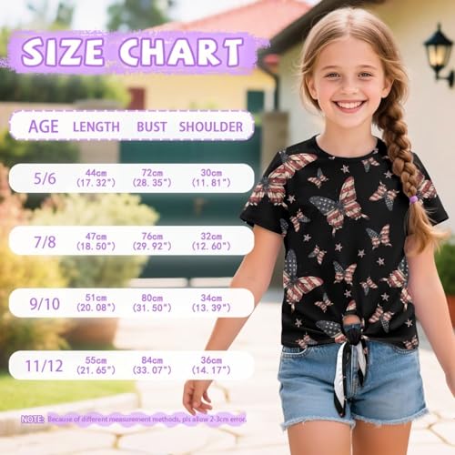 More information about Girls Tie Knot Front T-Shirt Casual Cute Summer Short Sleeves Loose Crewneck Tops Age 5-12 Years for Summer