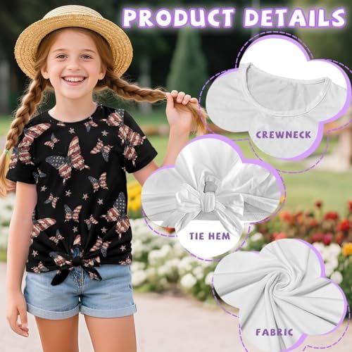 Girls Tie Knot Front T-Shirt Casual Cute Summer Short Sleeves Loose Crewneck Tops Age 5-12 Years for Summer 6