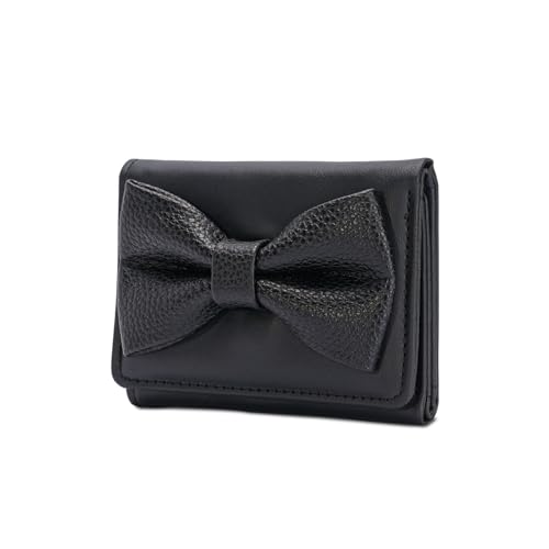 Womens Wallet with Card Holder Coin Purse Stylish Change Purse Sweet Bows Short PU Leather Wallet for Trave Pu Leather Change Bows Korean Styles with Card Holder, Black, Mass Beauty 4