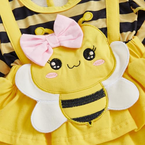 VISGOGO Baby Girl Romper Dress Newborn Bee Fall Winter Clothes Infant Striped Jumpsuits with Headband 3
