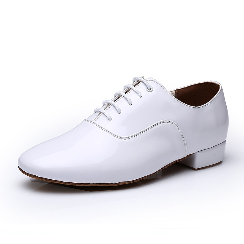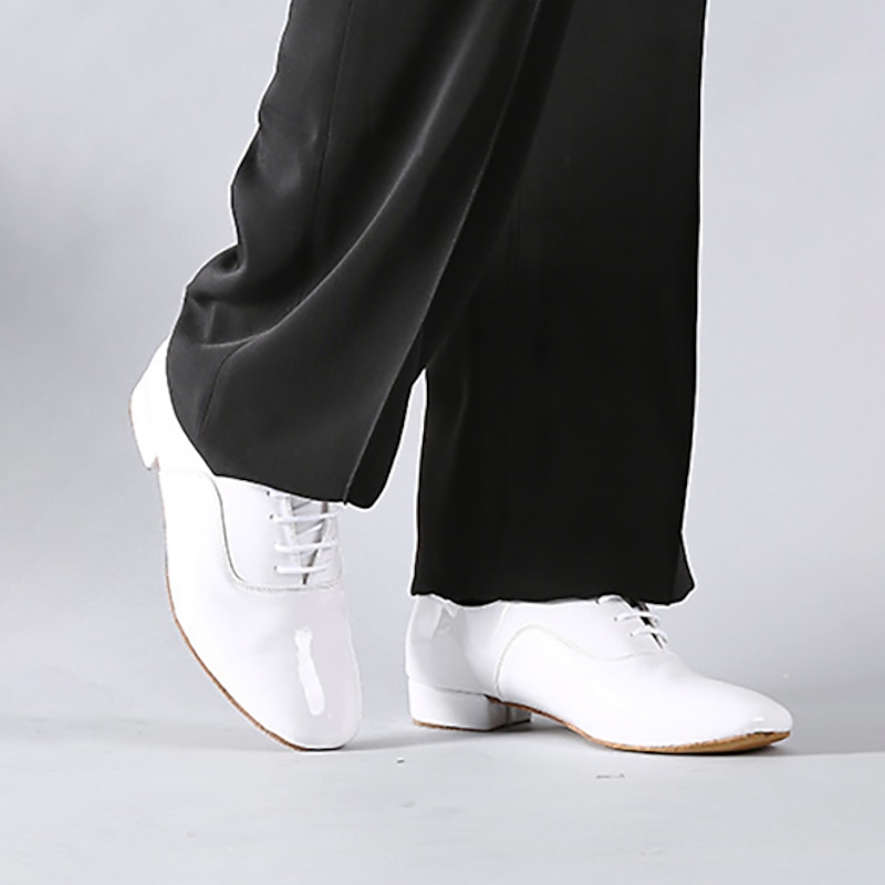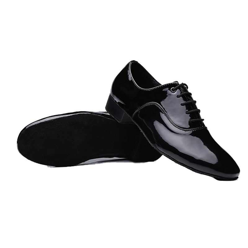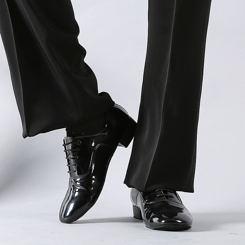 Highlights [Fabric] : Crafted from high-quality PU faux leather, these men's dance shoes offer a sleek, glossy finish that mimics patent leather. The soft suede sole provides excellent grip and stability, perfect for indoor dance floors. [Fit] : Designed as professional-grade ballroom shoes, these lace-up oxfords offer a precise fit with neatly threaded eyelets, ensuring adjustable comfort and support throughout any performance. [Design Highlights] : These shoes feature a classic oxford silhouette with a thick, 1-inch heel that adds a touch of formality. The combination of a low, stacked heel and a soft interior lining makes them as comfortable as they are stylish, ensuring you can dance the night away with ease. [Occasions] : Perfect for formal events and various dance settings such as ballroom, waltz, and Latin dance performances. Whether for a special occasion or a professional dance competition, these shoes bring timeless elegance to any event. [Size Range] : Available in a wide range of sizes, from US6-6.5 to US10.5, accommodating multiple foot sizes for adult men.