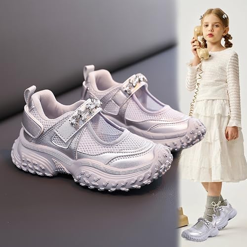 Girls Closed-Toe Summer Sandals withSparkle Strap, Breathable Mesh SportsSole, Adjustable Hook-and-Loop, Size28-36 1