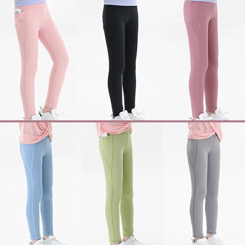 Girls' Active Leggings Kids Dance Running Yoga Pants Stretchy High Waist Tight Pants with Pockets 5-11Y 6