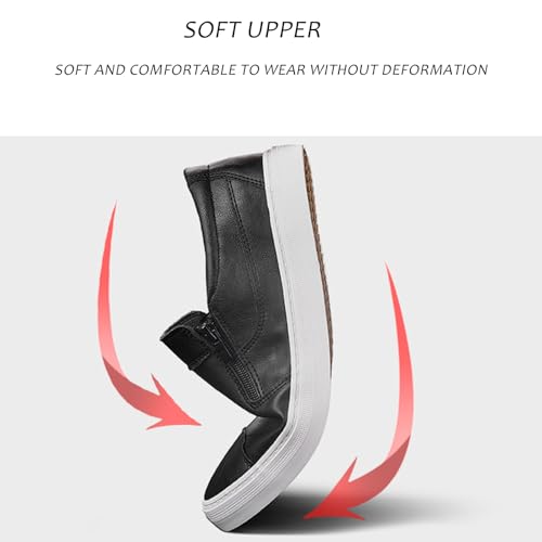 Men's Leather Flat Casual Loafers with Zipper Lightweight Soft Sole Slip-On Casual Shoes Comfortable Round Toe Work Flat Shoes 6