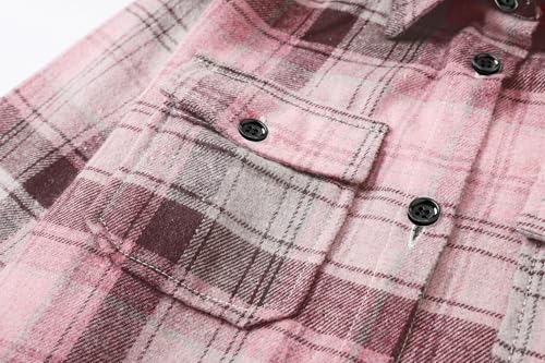 SANGTREE Women and Girls Oversized Flannel Plaid Shirt Mid-Length Casual Button Down Shirt with Pockets 6