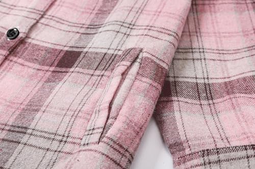 SANGTREE Women and Girls Oversized Flannel Plaid Shirt Mid-Length Casual Button Down Shirt with Pockets 7