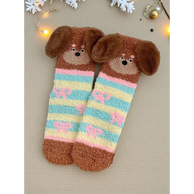 Women's Christmas Cozy Fuzzy Socks, Cute Dog Design Warm Winter Homewear Slippers for Holiday Lounging & Gifts 1