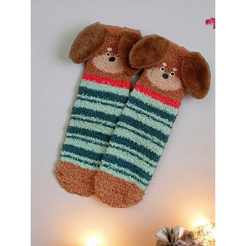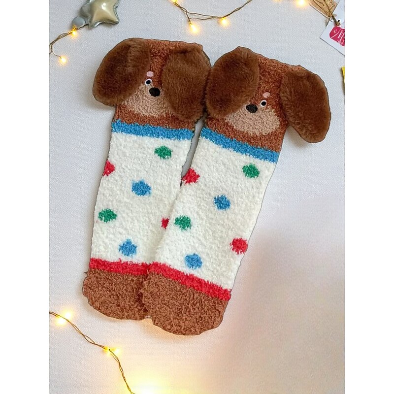 HOT ! Women's Christmas Cozy Fuzzy Socks, Cute Dog Design Warm Winter Homewear Slippers for Holiday Lounging & Gifts