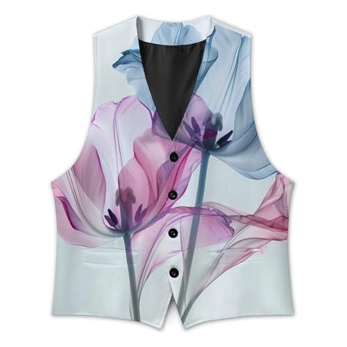 More information about Abstract Blue Tulip Floral Men's Suit Vest Waistcoat Vests Formal Dress with 2 Pockets for Business Casual Tuxedo