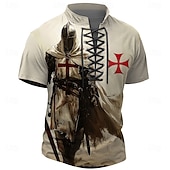 More information about Halloween Men's Knights Templar Henley Shirt T shirt Tee Short Sleeve T shirt 3D Print Crew Neck Lace Up Neck Henley Shirt Casual Street Sports Outdoor Casual Brown Khaki Summer Spring All Seasons
