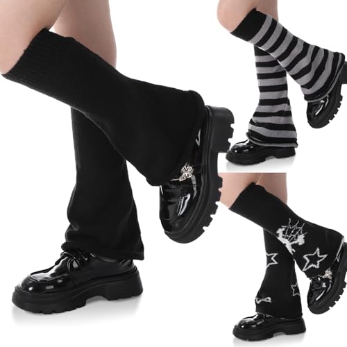 3 Pairs Women Leg Warmers Y2k Knitted Long Leg Warmers Goth Lolita Accessories 3
