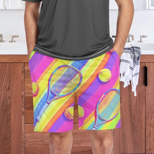 Men's Short Pajama Bottoms Tennis Ball Stripe Home Casual Sleep Pants 5