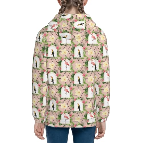 Flamingo and Toucan Kid Hoodies Boys Zip Up Sweatshirts Girls Pullover with Pocket 5