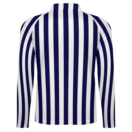 Dark Blue and White Stripes Men's Sun Protection Shirts UV SPF UPF 50+ Long Sleeve Rash Guard Lightweight