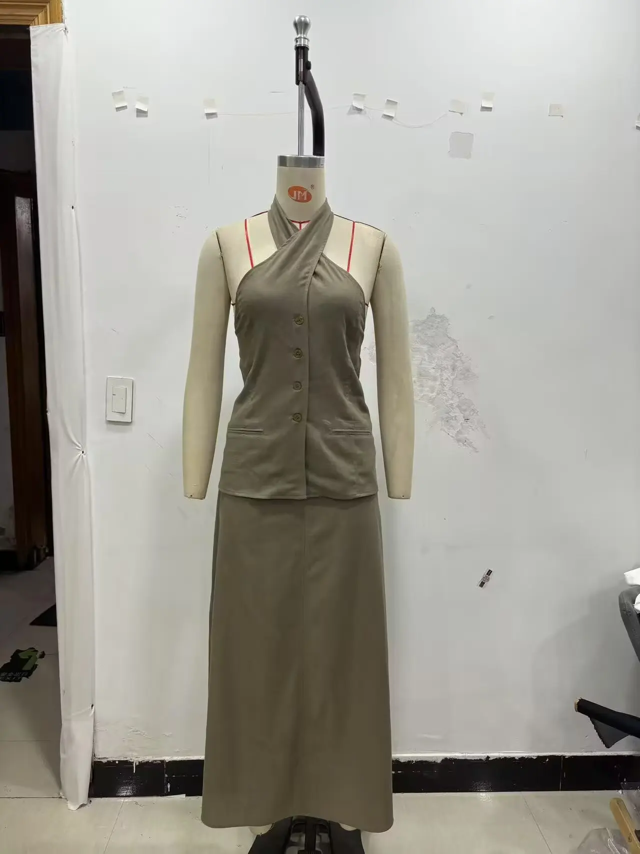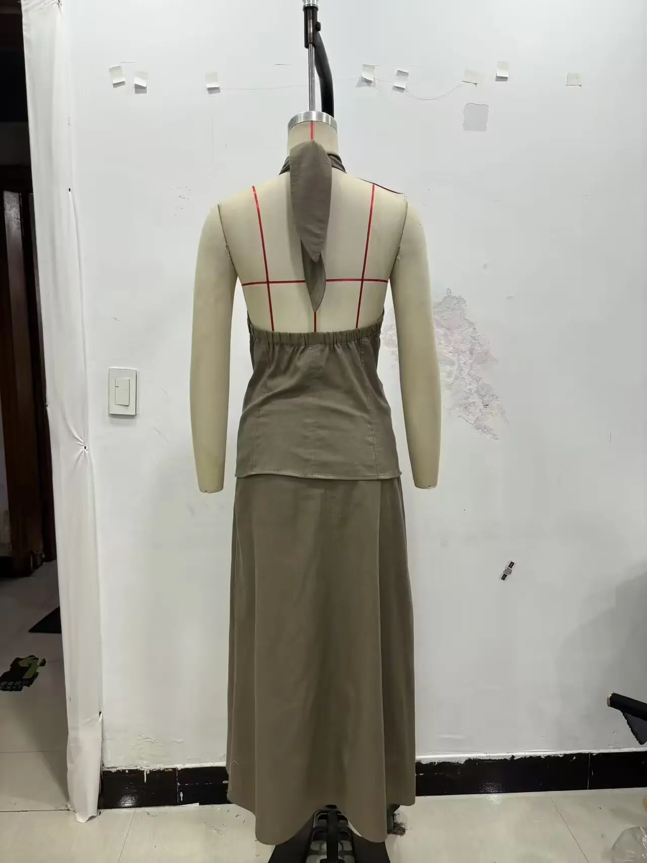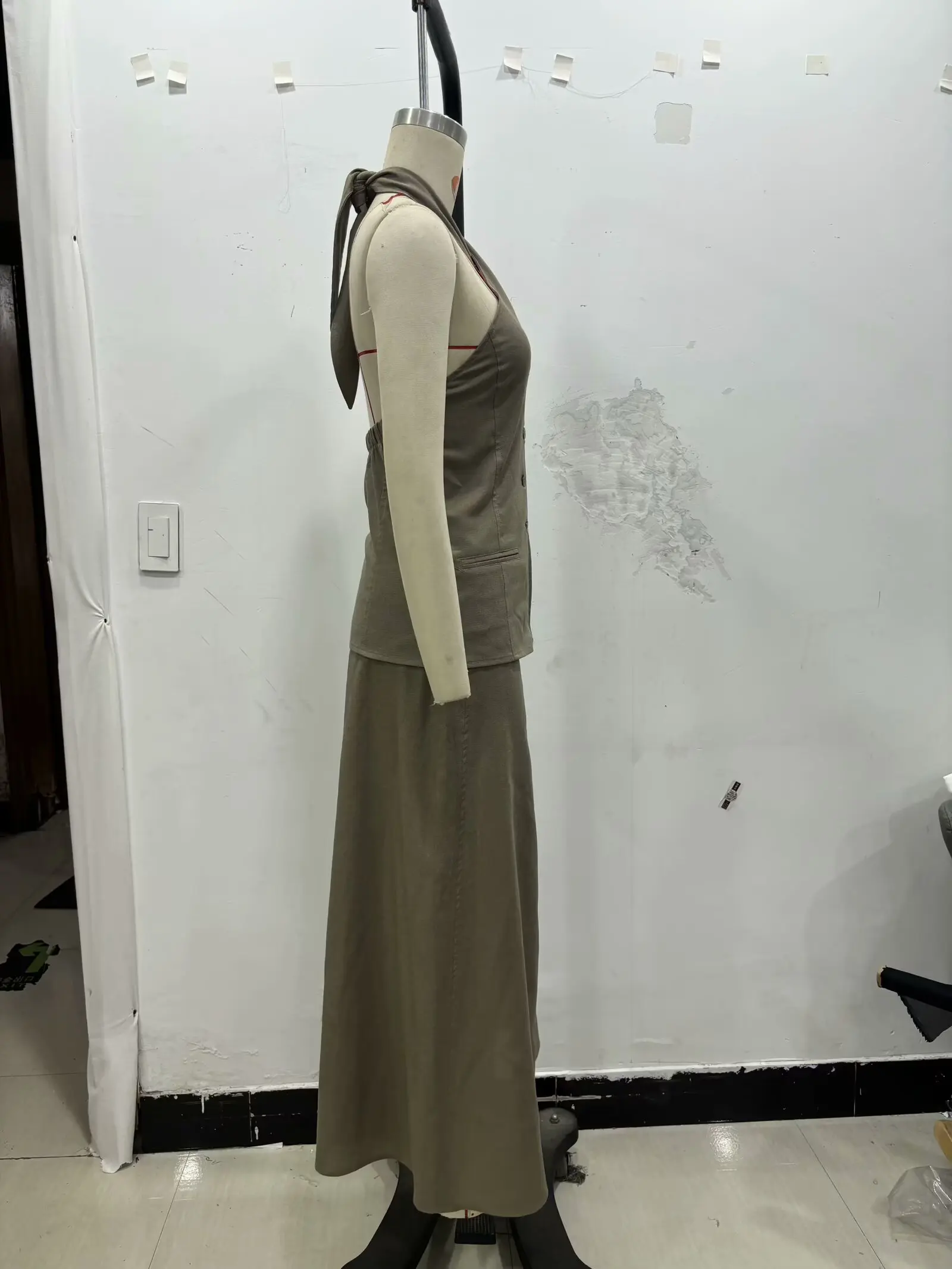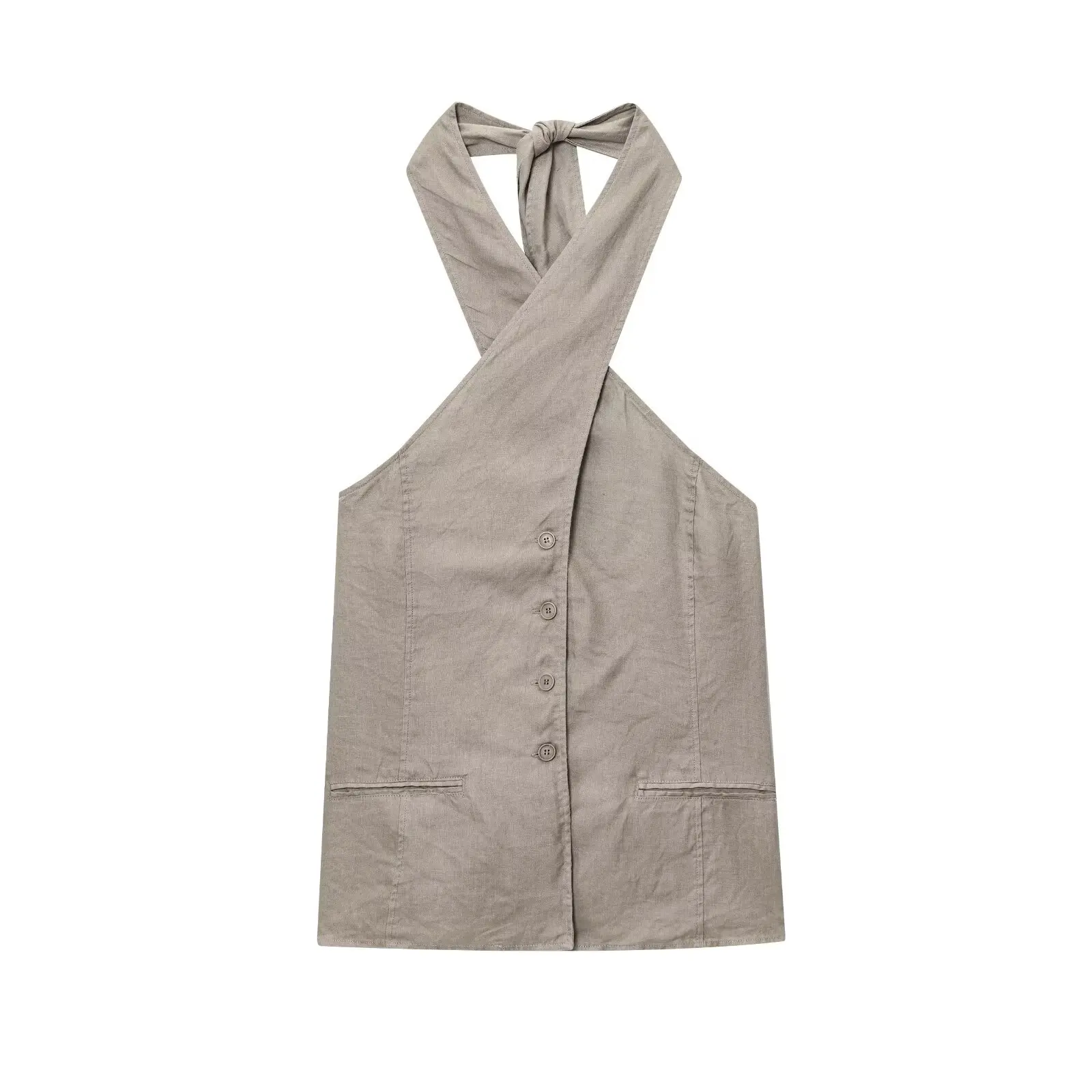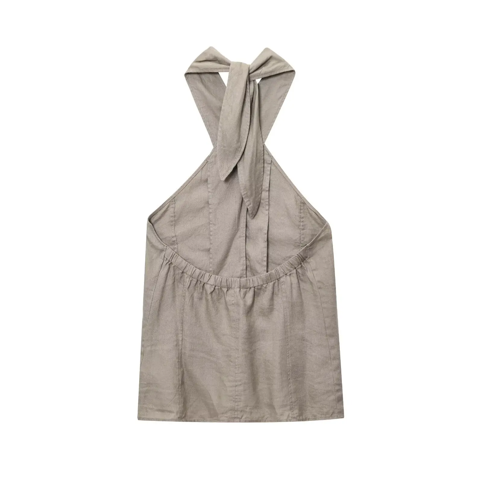 TRAF European and American style summer new fashion women's linen cross halter neck vest top herringbone midi skirt suit