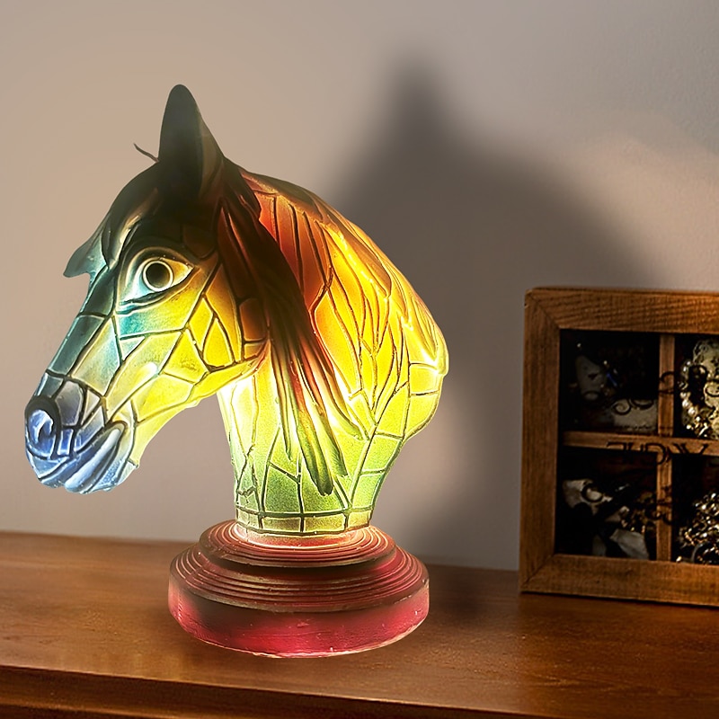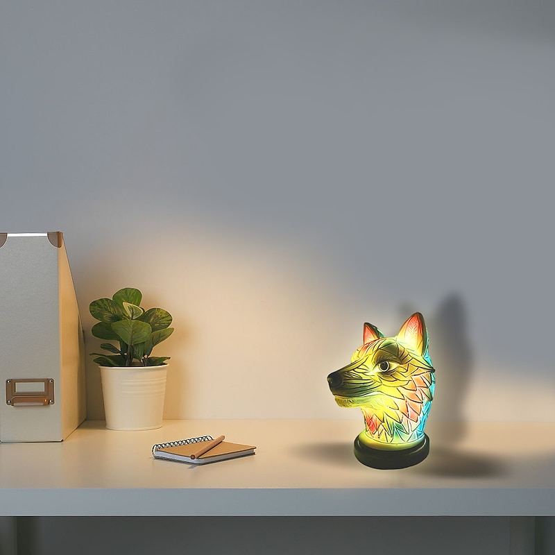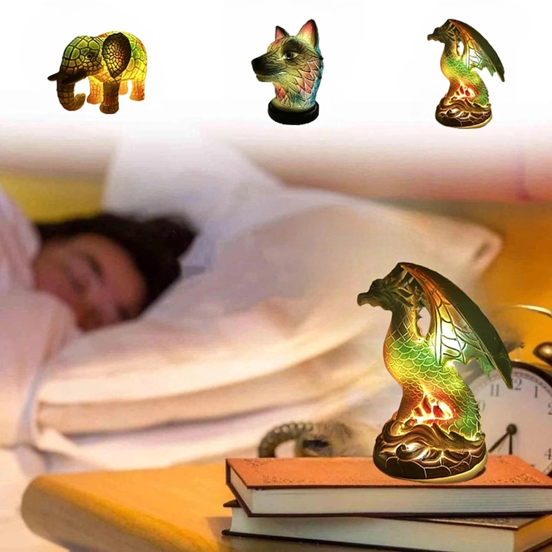 HOT ! Animal Table Lamp Series, Stained Resin Table Lamp Night Light, Stained Resin Animal Night Light, Stained Resin Lamp for Bedroom Animal Lovers Home Decor 10*15CM/3.93*5.9INCH (3pcs Button Batteries)