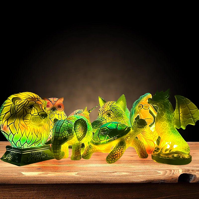 Animal Table Lamp Series, Stained Resin Table Lamp Night Light, Stained Resin Animal Night Light, Stained Resin Lamp for Bedroom Animal Lovers Home Decor 10*15CM/3.93*5.9INCH (3pcs Button Batteries) 3