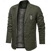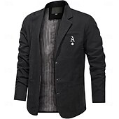 More information about Men's Letter Print Cotton Suit Jacket Suits Coat Blazer Casual Outdoor Dailywear Long Sleeve Notch Lapel Collar Outwear Pockets Button Down Stripe Lined Suit Jacket Fall Winter Black khaki Army Green