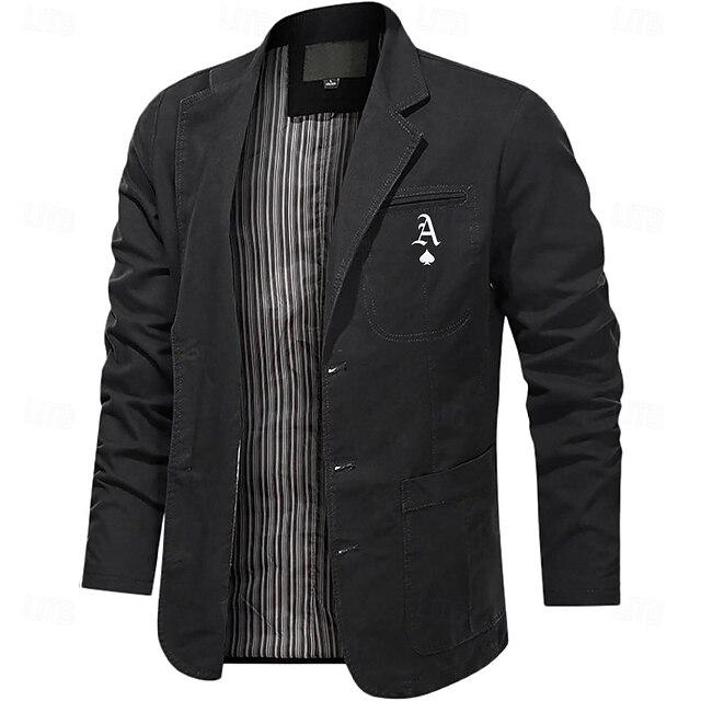 Men's Letter Print Cotton Suit Jacket Suits Coat Blazer Casual Outdoor Dailywear Long Sleeve Notch Lapel Collar Outwear Pockets Button Down Stripe Lined Suit Jacket Fall Winter Black khaki Army Green 1