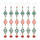 HOT ! 6Pcs Christmas Candy Cane Ornaments, Red and White Lollipop Hanging Decorations with Curly Bells & Beads, Festive Candy Stick Ornaments for Christmas Tree Decor