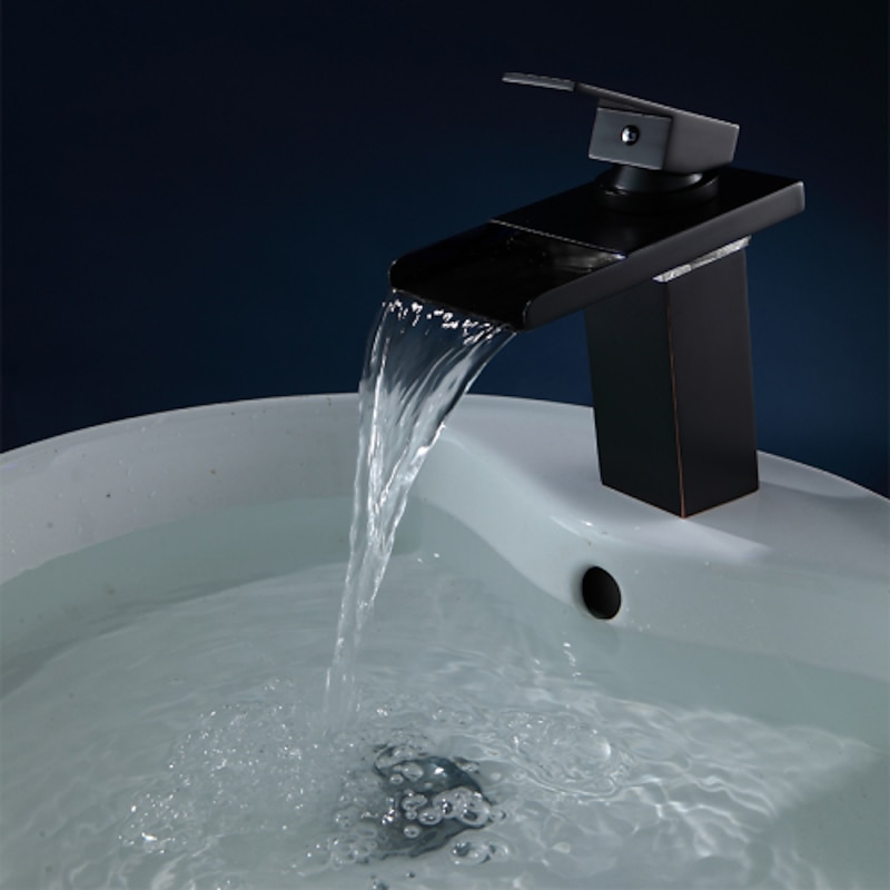 HOT ! Brass Bathroom Sink Faucet,Waterfall Oil-rubbed Bronze Single Handle One Hole Water Flow LED Power Source Bath Taps with Zinc Alloy Handle Material, Ceramic Valve,and Cold/Hot Switch