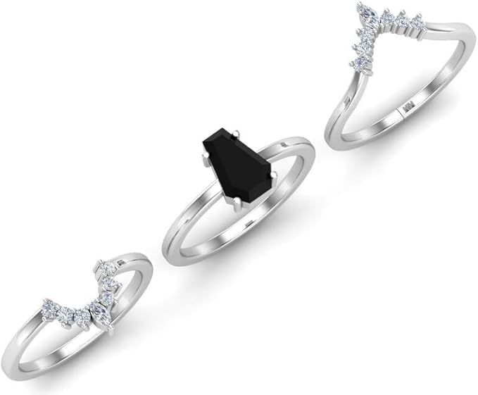 • Coffin Shape Black Onyx Engagement Ring Set Coffin Cut Wedding Ring Set 3 Piece Bridal Ring Set For Women Silver Black Onyx Ring Set Women Unique Antique Anniversary Promise Rings Set