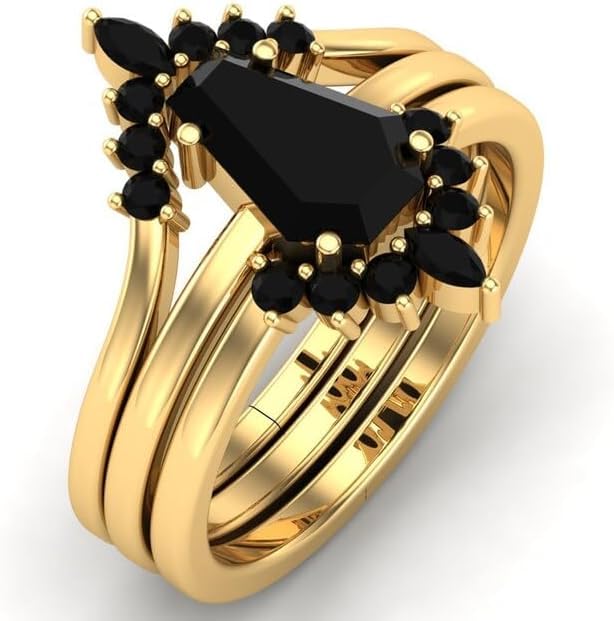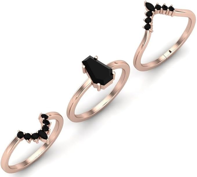 HOT ! 1CT-6CT Coffin Shape Black Onyx Engagement Ring Set Coffin Cut Wedding Ring Set 3 Piece Bridal Ring Set For Women Silver Black Onyx Ring Women Unique Antique Anniversary Promise Rings