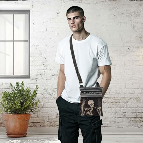 Gothic Skeleton Print Crossbody Bag Edgy Skeleton Messenger Bag Adult Adjustable Shoulder Strap Crossbody Purse Halloween Christmas Birthday Gift Travel Daily Use