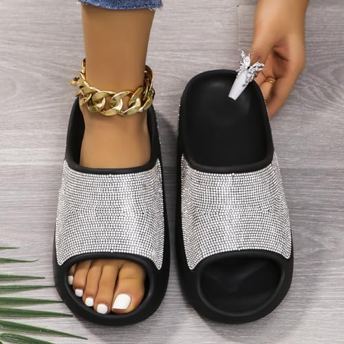 • Stunning Rhinestones: Adorned with glittering rhinestone embellishments, these Women's Rhinestone Slides sparkle and shimmer, adding a touch of glamour to your everyday look.