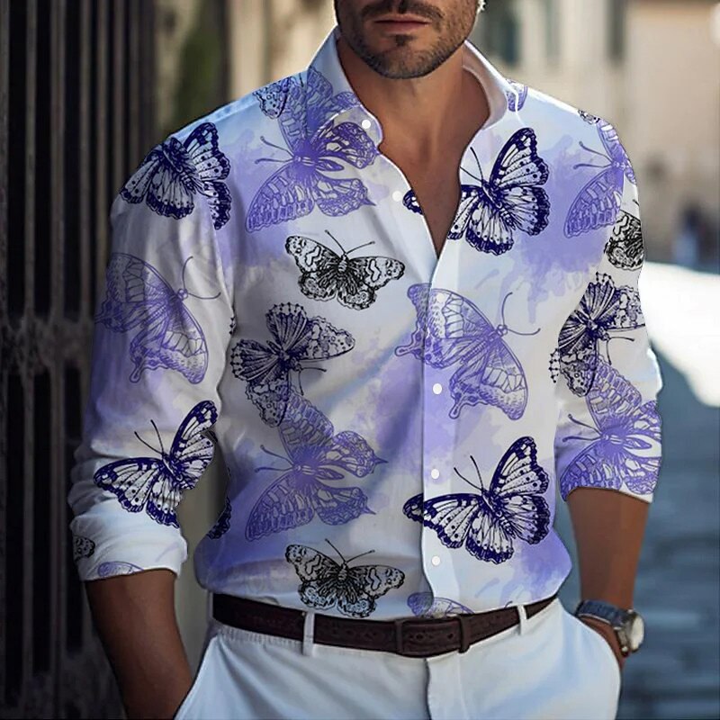 HOT ! Men's Butterfly Shirt Long Sleeve Casual Daily Wear Going out Weekend Fall & Winter Turndown Print Button-Down White Blue Purple Orange Gray