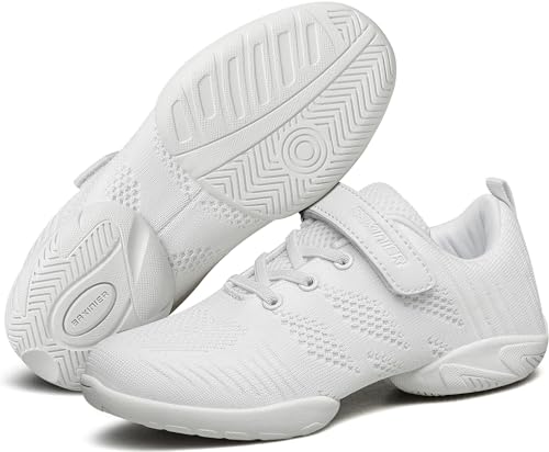 BAXINIER Girls White Cheerleading Dance Shoes Breathable Youth Cheer Competition Sneakers Athletic Training Tennis Shoes 6
