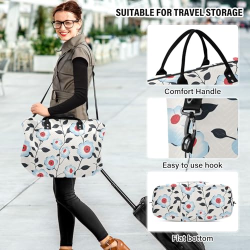 More information about Light Blue Flora Pattern Minimalist Style Gray Decorative Travel Bag Gym Bag with Adjustable Strap for Trip Foldable bolsas para viajar
